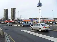 ![]() The Forge Retail Park now occupies much of historic Camlachie. The twin Bluevale and Whitevale Towers in the background were demolished in 2015. | |