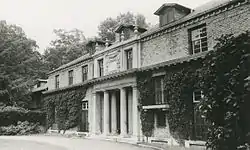 Camp-Woods, is a historic estate with associated buildings located at Villanova, Delaware County, Pennsylvania and built on a 400 ft (120 m) high spot which had been a 200-man outpost of George Washington's Army during the Valley Forge winter of 1777–78.[2] The house, built between 1910 and 1912 for banker James M. Willcox, is a two-story, brick and limestone, F-shaped house in an Italianate-Georgian style. It measures 160 ft (49 m) in length and 32 ft (9.8 m) deep at the "waist." It has a slate roof, Doric order limestone cornice, open loggia porches, and a covered entrance porch supported by Doric order columns. The house was designed by architect Howard Van Doren Shaw (1869-1926). The property includes formal gardens.[3] Its former carriage house is no longer part of the main estate. The original tennis court is now also a separate property named "Outpost Hill". The Revolutionary encampment is marked by a flagpole in a circular stone monument at the north-western edge of the property. The inscription reads, "An outpost of George Washington's Army encamped here thro the winter of Valley Forge 1777-1778".