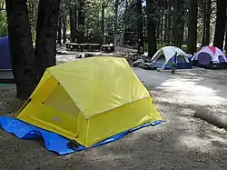 Camp 4 is a tent-only campground in Yosemite National Park in the United States.[2] It became notable after World War II as "a birthplace of rock climbing’s modern age."[3] It is located at an elevation of 4000 ft (1200 m) on the north side of the Yosemite Valley, close to base of granite cliffs near Yosemite Falls.[2]