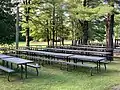 Camp Caribou Outdoor Picnic Tables near the main dining lodge