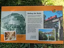 A Metro Parks sign along the Camp Chase Trail detailing the history of the Camp Chase Railway.