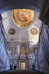 Sicily and Naples were separated in 1458 but remained as dependencies of Aragon under Ferrante.[41] The new dynasty enhanced Naples' commerce by establishing relations with the Iberian peninsula. Naples also became a centre of the Renaissance, with artists such as Laurana, da Messina, Sannazzaro and Poliziano arriving in the city.[42] During 1501 Naples came under direct rule from France at the time of Louis XII, as Neapolitan king Frederick was taken as a prisoner to France; this lasted four years.[43] Spain won Naples at the Battle of Garigliano and, as a result, Naples then became part of the Spanish Empire throughout the entire Habsburg Spain period.[43] The Spanish sent viceroys to Naples to directly deal with local issues: the most important of which was Pedro Álvarez de Toledo, who was responsible for considerable social, economic and urban progress in the city; he also supported the Inquisition.[44]