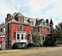 Campbell–Hicks House is a historic home located at Huntington, Cabell County, West Virginia. It was built in 1896, and is a 2+12-story, masonry dwelling in the Queen Anne style. It features a slender, two story cantilevered rounded tower. It also has a full front porch with a roof upheld by five sets of paired fluted columns with Ionic order capitals.[2]