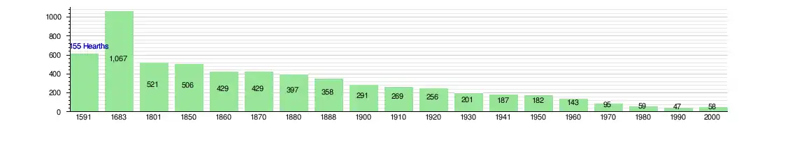 In 2000 there were 185 single family homes (or 93.4% of the total) out of a total of 198 inhabited buildings. There were 5 multi-family buildings (2.5%) and 8 other use buildings (commercial or industrial) that also had some housing (4.0%). Of the single family homes 21 were built before 1919, while 1 was built between 1990 and 2000. The greatest number of single family homes (102) were built between 1919 and 1945.[11]