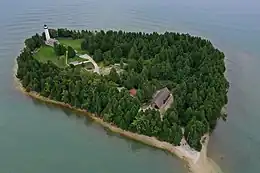 Cana Island is an island in Lake Michigan in the town of Baileys Harbor in Door County, Wisconsin, United States.[2] The Cana Island Light is on the east side of the island. It is possible to walk to Cana Island from the mainland over the tombolo when water levels are low.[3] Tombolo conditions are monitored by a webcam operated by the county parks department.[4] The island is part of the Town of Baileys Harbor, Wisconsin.