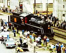 The locomotive subsequently became one of the most popular attractions in the association's collection, and it was later joined by CN 4-8-2 "Mountain" type No. 6060.[4] No. 1392 subsequently participated in several special events during its excursion career. During the 1986 World Exposition, No. 1392, along with No. 6060, was sent to Vancouver, British Columbia to take part in the Steam Expo '86 event, where a plethora of other steam locomotives also participated.[4][5] Both locomotives returned to Edmonton, once the exposition was over.[4] In 1993, the APRA, which by then changed its name to the Alberta Railway Museum (ARM), celebrated the 25th anniversary of its founding, and No. 1392 participated in the event.[3] The locomotive also participated in the 35th anniversary in 2003.[3]