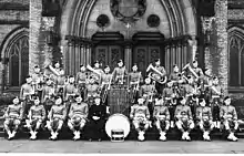 In the mid-1910s, a band was raised in the No. 2 Construction Company, which was the first all-black unit in the Canadian military. The band was created to perform at civic gatherings and in black churches. In 1917, it performed at the Dominion Day festivities, with a war diary noting that their performance "greatly assisted in entertaining the crowd and making the holiday a success."[24] At the time of World War Two, various all-female bands were formed throughout the services. In the RCAF, the female band unit was the RCAF Women's Division Band (notably led by Maurice Dunmall from 1943 to 1944),[25][26] while in the army the women's unit was known as the Canadian Women's Army Corps Pipe/Brass Band.[27]