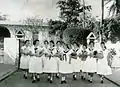 In the decades of 1940 and 1950, there was also a school band that participated in parades or patriotic celebrations and played the National Anthem during the salute to the flag.