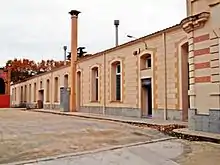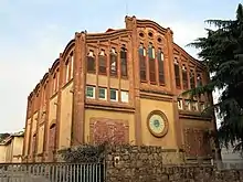 1910 Fàbrica Jover i Cia c/ Riera del Pinar, 12 It seems to be inspired by Romanesque churches through the use of brick vaults cover and blind rose window with the name of the company. OK