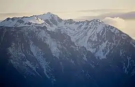 During the Pleistocene period dating back over two million years ago, glaciation advancing and retreating repeatedly scoured the landscape leaving deposits of rock debris.[5] The last glacial retreat in the Alpine Lakes area began about 14,000 years ago and was north of the Canada–US border by 10,000 years ago.[5] The U-shaped cross section of the river valleys is a result of that recent glaciation. Uplift and faulting in combination with glaciation have been the dominant processes which have created the tall peaks and deep valleys of the Alpine Lakes Wilderness area.