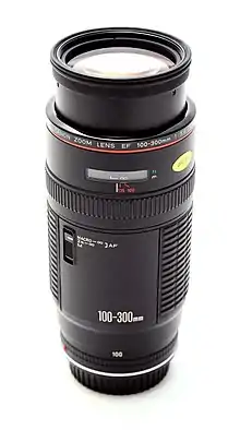 - ↑ Canon Inc. "EF100-300mm f/5.6". Canon Camera Museum. Retrieved 2016-05-18.