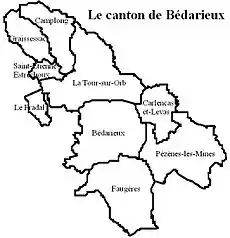 The Canton of Bédarieux is a former subdivision of the French department of Hérault, and its subdivision, the Arrondissement of Béziers. It had 10,000 inhabitants (2012).[1] It was disbanded following the French canton reorganisation which came into effect in March 2015.