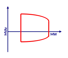 - at the upper part of the curve (generator produces a lot of reactive power) operation requires higher voltage on the output of the generator and thus higher excitation field. The rotating excitation winding has its own field heating limit;[1]