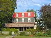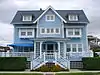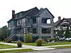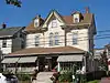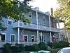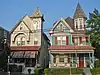 Several fires destroyed portions of the town and the mostly wooden, frame-built houses. The fire of 1878 destroyed about half the town, but many buildings were quickly rebuilt. This fire gave a particular boost to Button's career, and many of the local builders appear to have copied Button's style at this time.[6] These newer buildings were built with gingerbread trim, gables and turrets.[11][12]