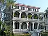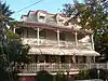 Architect Stephen Decatur Button began designing buildings in Cape May in 1863 when he remodeled and expanded the Columbia Hotel. During the next thirty years he designed over forty buildings in the town. His best known buildings there include the John McCreary House (1869–70), Jackson's Clubhouse (1872), the Stockton Cottages (1872), the Windsor Hotel (1879) and the Atlantic Terrace Houses (1891–92).[8] Plans for the George Allen House are believed to have been taken from a pattern book by Samuel Sloan. Architect Frank Furness is believed to have designed the Emlen Physick Estate, but may have otherwise visited Cape May only as a vacationer. Otherwise most of the buildings were built and designed by local builders in the vernacular style, borrowing from older buildings, pattern books and fashionable architects alike.[6]