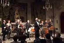 Capella Cracoviensis is a period instrument ensemble and a chamber choir based in Kraków, Poland.[1] It was formed in 1970 by composer and music conductor Stanisław Gałoński (b. 1936), its first director and general manager. Capella Cracoviensis specializes in early music, Renaissance polyphonies, Polish Baroque, and classical chamber music played on period instruments, as well as oratorios, and operatic scores including works of Mozart. Regular performances in many world-renowned venues have confirmed its status as one of the Poland's most outstanding period instrument ensembles.[2][3][4]
