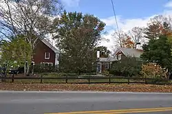 The Merrill House stands in a rural area of southern Cumberland, on the northwest side of Winn Road between Range Road and Maine State Route 9. It consists of a 1+1⁄2-story Cape style house, connected via a single-story ell to a barn, stretching along the road. The main house is five bays wide, with a central entrance that is flanked by sidelight windows and pilasters, and is topped by a broad entablature. An enclosed porch extends to the right, while the ell to the left also has five bays, with a secondary entrance at the far right. The barn is 2+1⁄2 stories in height, and has Greek Revival pilasters, entablature, and gable end returns.[2]