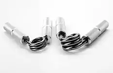 By 1992, IronMind had moved all design and production of its grippers in-house.[16] The next generation of the Silver Crush Grippers, released in 1993, marked the next major step in gripper evolution; their stainless-steel handles replaced the previous chrome-plated mild steel handles, and a new assembly technique eliminated the drift pin central to the design of the older grippers.[17] IronMind briefly offered a model with a right-hand wind spring, although that design was soon shelved in order to concentrate on the more popular left-hand wind spring. The new design also featured a clear band at the midpoint of each handle, an element of trade dress for IronMind's grippers ever since.