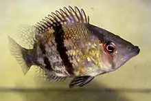 Caquetaia is a small genus of cichlid fishes from tropical South America. The genus currently contains three species. Caquetaia spp. are ambush predators that predominantly feed on invertebrates. Seasonal fluctuations in water level have been shown to contribute to Caquetaia spp. consuming a larger variety of invertebrates, especially when the water level is low during dry seasons.[1] Caquetaia are known for their highly protrusible jaws, an adaptation hypothesized to improve their ability to capture prey by enhancing overall ram velocity.[2]