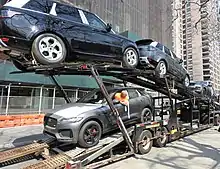 A car carrier trailer, also known as a car-carrying trailer, car hauler, or auto transport trailer, is a type of trailer or semi-trailer designed to efficiently transport passenger vehicles via truck.