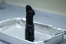 A column of porous black graphite formed during the experiment.