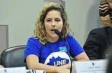 Carina Vitral Costa (born 6 July 1988) is a Brazilian student and activist, member of the Communist Party of Brazil (PCdoB).[1] She had served as president of the National Union of Students (UNE) from 2015 to 2017.[2] Currently, Vitral is advisor to the executive-secretary of the Ministry of Finance.[3]