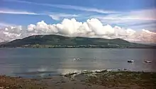 Carlingford Lough (Irish: Loch Cairlinn,[2] Ulster Scots: Carlinford Loch[3]) is a glacial fjord or sea inlet in northeastern Ireland, forming part of the border between Northern Ireland to the north and the Republic of Ireland to the south. On its northern shore is County Down, the Mourne Mountains, and the town of Warrenpoint; on its southern shore is County Louth, the Cooley Mountains and the village of Carlingford. The Newry River flows into the loch from the northwest.