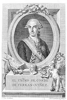 Carlos José Gutiérrez de los Ríos y Rohan-Chabot, 6th Count of Fernán Núñez (11 July 1742 – 23 February 1795) was a Spanish soldier and Diplomat whose military career spanned over two decades. From a noble family, after his military career he served in several diplomatic capacities including Ambassador to Portugal from 1778 to 1788 and Ambassador to France from 1787 to 1791.