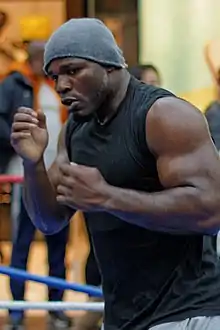 Following his victory against Gashi, Takam would go on to record three consecutive ten-round unanimous decision victories. The first came on 14 September 2019 against Craig Lewis in Monticello, New York, with Takam winning via scores of 99–91, 99–91, 96–94.[8] His next fight on 28 February 2020 also took place in the state of New York, this time in Huntington against Fábio Maldonado, which he won by shutout unanimous decision.[9] On 9 July 2020, Takam fought Jerry Forrest. Takam stepped in to fight Forrest on short notice, which was noticeable especially in the later rounds. Takam was able to build up an early lead, however, which was enough to win an all three judges' scorecards, 98–92, 97–93 and 96–94.[10]