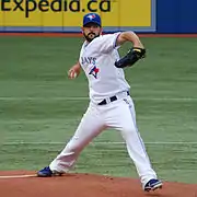 After starting the season in the bullpen for the Blue Jays, he was moved to a position in the starting rotation to fill in for open spots previously filled by Brett Cecil and Jesse Litsch. On August 4, 2011, Villanueva was placed on the 15-day disabled list with a right forearm strain. Villanueva was re-activated from the disabled list on August 31. Brian Tallet was designated for assignment to make room for Villanueva.[10] Villanueva began the 2012 season as the long reliever in the Jays' bullpen, but was promoted to a starter after numerous injuries to the pitching staff. After posting a 6-1 record, Villanueva left the team for personal reasons on August 5. J. A. Happ started in place of Villanueva.[11]