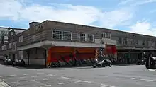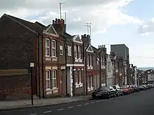 In the late 19th century and early 20th century, Carlton Hill's notoriety as a slum increased. Poverty, drunkenness, disease and low living standards were rife.[3][26] Brighton's reputation was damaged by a disparaging article in The Lancet in 1882: making reference to Carlton Hill, it criticised the town's poor standards of health.[22] Assisted by government funding, Brighton Corporation undertook extensive slum clearance from 1928 until the start of World War II, transforming the area's appearance.[3][5] Two large blocks of flats—Brighton Corporation's first council flats—were built to rehouse many of the displaced residents. The Milner Flats, a long four-storey block, stand on the site of Woburn Place, and were completed in 1934. Alderman Hugh Milner Black, a Corporation member who campaigned for housing improvements in Brighton, was commemorated in the naming. Kingswood Flats, on the site of Nelson Place and a Primitive Methodist chapel, were built in 1938. The name refers to Minister for Health Kingsley Wood.[4][27] Some displaced residents were moved out of the area: the new council estates of Whitehawk and Moulsecoomb, built in the 1920s and early 1930s on the fringe of Brighton, accommodated many former Carlton Hill residents.[26][28] An earlier low-rise development took place in 1931, when the small Tarnerland council estate was built on empty land near Tilbury Place.[23]