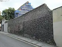 Another building formerly associated with the church is the Edward Riley Memorial Hall,[65] now named the Carlton Hill Centre. It has a steep clay-tiled roof and brown brickwork. The high flint walls around it are described as a positive feature of the conservation area, although the building itself has a "neutral effect" according to the council's character statement.[69] The building was used as the church hall until the church closed in 1980; the Chichester Diocesan Centre for the Deaf was then established in it. It is currently the Autism Sussex Day Centre.