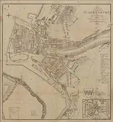 - ↑ "View of Caernarfon showing Castle, oblique aerial view. 5"x4" black and white glass plate negative". Britain from Above.