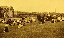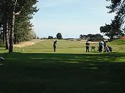 Golf is recorded as having been played at Carnoustie in the early 16th century. In 1890, the 14th Earl of Dalhousie, who owned the land, sold the links to the local authority. It had no funds to acquire the property, and public fundraising was undertaken and donated to the council. The original course was of ten holes, crossing and recrossing the Barry Burn; it was designed by Allan Robertson, assisted by Old Tom Morris, and opened in 1842.[1] The opening of the coastal railway from Dundee to Arbroath in 1838 brought an influx of golfers from as far afield as Edinburgh, anxious to tackle the ancient links. This led to a complete restructuring of the course, extended in 1867 by Old Tom Morris to the 18 holes which had meanwhile become standardized. Young Tom Morris won a major open event there that same year. Two additional courses have since been added: the Burnside Course and the shorter though equally testing Buddon Links.