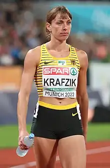 Carolina Krafzik (born 27 March 1995) is a German track and field athlete who specializes in the 400 metres hurdles and 400 metres.[1] She represented Germany at the 2019 World Athletics Championships, competing in women's 400 metres hurdles.[2]