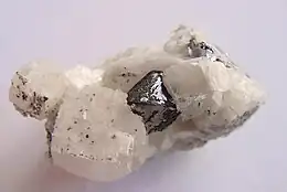 Carrollite occurs in hydrothermal vein deposits[14] associated with tetrahedrite, chalcopyrite, bornite, digenite, djurleite, chalcocite, pyrrhotite, pyrite, sphalerite, millerite, gersdorffite, ullmannite, cobaltoan calcite, and with linnaeite group members linnaeite, siegenite and polydymite.