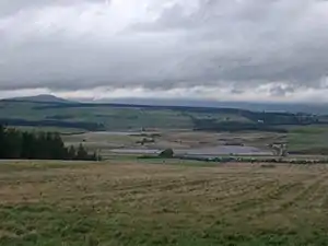 The Royal Caledonian Curling Club as stated had a club house and possibly a curling house and the existence of a siding is recorded in 1853.[1] A path ran from the station across a drainage ditch and the Allan Water to the curling loch and to Carsebreck Farm.[9] No access to the station from the nearby road or from Netherton Farm originally existed.[9] The 'platform' area was originally quite short and it is said that for many years, up until 1906, curlers disembarked directly onto the ballast.[11] No name board appears to have been present.