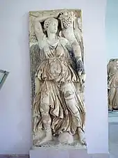 Elements of the official Roman art were discovered on the Byrsa hill, including sculptures and bas reliefs depicting victory. These excavated items have been interpreted as a commemoration of the victory over the Parthians in 166, during the reign of Marcus Aurelius and presented on a triumphal arch or monument portal.[10][11]
