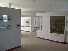 Although the collections of mosaics of the museum are not comparable to those of Bardo National Museum, the fact remains that genuine masterpieces are found in the museum. Among the recent discoveries, are from the panels found in a private spa located in Sidi Ghrib, near Tunis. It represents a topless woman running through a rose garden surrounded by water.[13] On the same site a panel of marble and limestone was discovered showing the activity of a matron at the end of the bath. It shows the individual seated on the toilet, surrounded by two servants, one of which holds a mirror and the other carrying a basket with various jewels. At the ends of the mosaic, the artist presents the bath accessories: a pair of sandals, a basket of laundry, a jug, etc.[14]