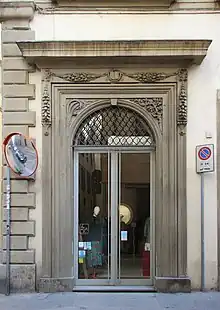 In the 17th and subsequent centuries it underwent significant alterations and, in any case, from the 19th century onwards, it was repeatedly noted for the very elegant sculpted stone decoration that formed the façade of the workshop.[1] Thus, for example, Federico Fantozzi noted in his 1842 guidebook: «The beautiful door, the earthly window and the coat of arms that can be seen above the windows on the first floor deserve to be carefully observed for the beautiful festoons of flowers and fruit that were sculpted there with such diligence and love, that instead of stone they seem real and natural».