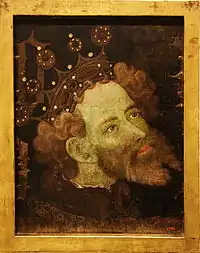 Peter IV of Aragon (1427) by Gonçal Peris Sarrià and Jaume Mateu. It comes from the Hall of the Council of Casa de la Ciutat until 1859. Now preserved in the Museu d'Art de Catalunya.