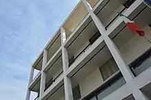 The Casa del Fascio of Como (Italian pronunciation: [ˈkaːza del ˈfaʃʃo, ˈkaːsa-]), also called Palazzo Terragni, is a building located in Como, Italy, in the Piazza del Popolo (former Piazza Impero), and it is one of the masterpieces of Italian Modern Architecture.[1] It was designed by Italian architect Giuseppe Terragni (1904-1943).[1] It was inaugurated in 1936 as the local office of the National Fascist Party.[2] After the fall of Fascism in 1945, it was used by the National Liberation Committee Parties and in 1957, it became the headquarters of the local Finance Police, who still occupy it.[2] The building has a square plan and four stories.