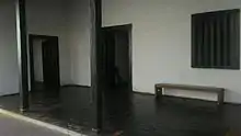 The walls were built using the technique of rammed earth, with a thick and massive appearance. Inside, a central door was structured, with a porch, flanked by two front rooms, in addition to the guest rooms and the chapel, also called the hermitage, which no longer exists.[3] It also opens to a main hall, through which one has access to other rooms or alcoves,[5] and it also has two attics that differ from other examples of the colonial period in that they have only a gable roof.[10] The main hall is a gathering area for the family itself and also for the slaves.[3]