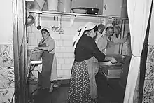 The initiative for the SP creation started in 1941, when population growth in the Casablanca Mellah was raising concerns over poor hygiene and undernutrition conditions.[15][12] Few documents remain of the SP first period; the number of children benefiting from the canteen at this time is unknown. Its goal was to provide hot meals as well as to educate underprivileged young Jewish children between the ages of 6 and 8. The SP received 300 children[16] per year . At the very beginning, only one teacher was hired and only a single class of thirty children was in operation[17][18] There are few press articles, about fifty photographic shots,[19] photos of charity balls in which money collections took place as well as some shots of benefactors. They were wealthy Jewish donors from Casablanca. Armand Tordjman was the first director and Mr. Elbaz was the accountant. Some assistants and cooks were also hired. Merchants of the central food market in Casablanca donated surpluses and sold food at reduced prices. The Civil Region (of Casablanca) provided coupons for fabrics, which were cut free of charge by Jewish tailoring companies and volunteers distributed the clothes. Millers provided flour at low cost, with which a baker made bread for free.[17][18] In 1941, when the SP was established, Jewish structures capable of integrating the children of the Mellah were not equipped to meet the needs. These structures: the JOINT, ORT, Alliance Israélite Universelle, OSE, and others were more active in the following years. After Morocco's independence in 1956, the Jewish population of the Mellah gradually left the ghetto, which became depopulated.