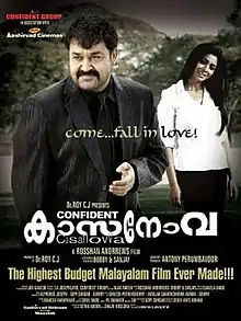 Casanovva (also known as Confident Casanovva) is a 2012 Indian Malayalam-language romantic action thriller film directed by Rosshan Andrrews and written by Bobby & Sanjay. It was produced by Roy C. J. of Confident Group in association with Aashirvad Cinemas. It stars Mohanlal in the title role, along with an ensemble cast of Shriya Saran, Vikramjeet Virk, Raai Laxmi, Roma Asrani, Sanjjanaa Galrani, Abhishek Vinod, Riyaz Khan, Shankar Panicker, Lalu Alex and Jagathy Sreekumar. The film features original soundtrack composed by Gopi Sundar, Alphons Joseph, and Gowry Lekshmi, and a film score composed by Sundar.[2]