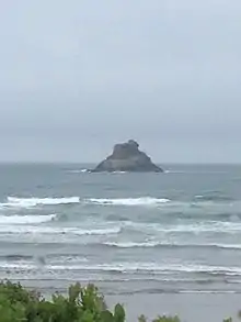 Castle Rock is a large monolith right off the coast of Arch Cape, Oregon. It is named Castle Rock because it resembles a castle turret. The rock is Basalt, formed millions of years ago from lava flows.[1]