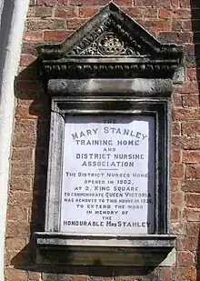 Numbers 6, 8, 10 and 12 were originally a merchants houses and was used as nursing home from 1920 to 1990.[19][20] The district nurses home originally opened in 1902 at Number 2 King Square to commemorate Queen Victoria but was moved to Castle Street in 1926.