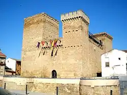 The coat of arms of the House of Medrano with the Cross of Calatrava, seen on the entrance of the castle, located on its eastern facade, is undoubtedly the shield from their ancestor Don Pedro Gonzalez de Medrano, who attended the victorious day of Las Navas de Tolosa (16 July 1212), forming part of the brilliant retinue that accompanied Sancho VII of Navarre, and constituted the most significant nobility of the Kingdom.[2] He took up arms: Gules Shield with the argent cross, figured as that of Calatrava.[3]