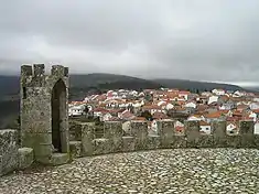 The castle is situated in an urban context, along the edges of the agglomerated townscape, on the top of 930 metres (3,050 ft) hill consisting of white and red quartz, on the flanks of the Serra dos Galhardos, overlooking the valley of Mondego.[1]
