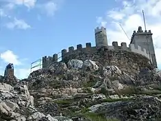 The castle was constructed in 1183, likely built over the ruins of a former-Lusitanian castro, by men under the orders of King D. Sancho I.[1] Vestiges of the ancient castro were subsumed in the beginning of the 20th century.[1] In 1187, King Sancho would issue a Foral (charter) for Folgosinho, that would be reconfirmed during the reign of King D. Afonso II (in 1217), then in 1350 by King D. Denis.[1] But, its construction is debated by Portuguese archaeologists.[2] In the beginning of the 20th century, some investigators recognized primitive vestiges of the primitive medieval castle, which they attribute to the actions of D. Sancho I.[2] Unfortunately, it can not be confirmed, especially since multiple archaeological excavations suggest a medieval origin.[2] What is clear, is that Folgosinho did not constitute part of the primary lines of conquest and military delineation of the national territory, but rather as part of a wider settlement strategy.[2] But, even these require further documentation.[2] Over the centuries, military documentation is non-existent, and most references associated with the forals passed by D. Afonso II, D. Dinis and D. Manuel, with little evidence on the preponderance of control or management of the territory.[2]